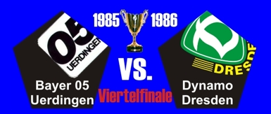 Llegó en los cuartos de final de la Recopa 1985/86 el duelo entre el campeón de Copa de Alemania Occidenta y el campeón de la Copa de la RDA . En las filas del Dresden comandados por el técnico Klaus Sammer , Mathias Sammer , Ulf Kirsten , Dixi Döimer , Ralf Minge o Frank Lippman. En La ida ante 40.000 espectadores incluyendo cerca de 300 aficionados del Uerdingen . Cayó el visitante por 2-0 . El Dynamo de Dresden que hasta ese momento nunca habia superado la barrera de los cuartos de final en los años 70 llegó tres veces y cayó ante Oporto Juventus y Benfica y el los 90 ante Rapid de Viena tampoco lo conseguira esta vez en un encuentro que incluso dominaba en el descanso por 1-3.. El Bayern Uerdingen ganará por un partido frenetico cara al gol , ya en el minuto 1 los visitantes cobraban ventaja Ralf Minge remataba solo dentro del area chica un saque de falta , que fué neutralizado diez minutos después por Wolfgang Funkel al cabecear un corner dentro del area chica también , de ahí al final del primer tiempo con goles de Frank Lippman tras un rapidisimo contrataque y Rudi Bommer en propia meta colocaban un resultado de 1-3 que sumado al 2-0 de la ida daban un 1-5 en el global que daban la eliminattoria por sentenciada , los locales necesitaban al menos cinco goles para conseguir la clasificación , era una misión imposible incluso , nadie creia en la remontada y una periodista de la televisión María Gordon dijo en su momento "El asunto ha terminado" y algunas personas se volvieron a sus hogares viendo el panorama perdiendose la segunda mitad y la gran remontada que pasarán a la historia de la Competiciones Europeas.