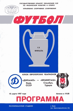 18 de marzo 1987., 19.00, 04.01 , Kiev, el estadio republicano, -2 °, 100 000 espectadores, Árbitros:: Thomas, Van der NIT JC, Dolstra (todos - Países Bajos). Dynamo (Kiev) - Besiktas (Estambul, Turquía) 2:00 (0:0, 2:0). Goles: 01:00 Blokhin , 02:00 Yevtushenko DYNAMO KIEV: Chanov; Bal, Bessonov, Baltacha, Demianenko,Yevtushenko, Mikhailitchenko, Za varov, Morozov, Belanov y Blokhin. BESIKTAS: Jurkovíc; Biza, Kadir, Samet, IJIvi, Goekhan, Metirí, Papri ka, Feyaz, Fimret, Sinan.