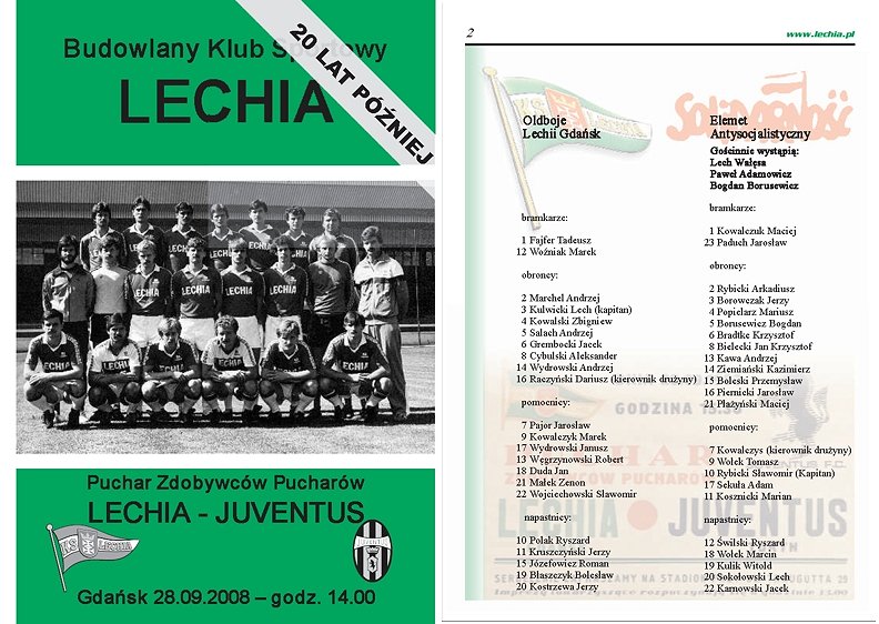 Tras la derrota por 7-0 en turín estaba todo resuelto para la Juventus y sólo era un tramite este partido de vuelta de de los dieciseisavos de final de la Recopa de Europa. Esta era la primera participación en Europa de este modesto club del norte de Polonia e iban a caer con extrépito ante uno de los clubes más laureados del futbol mundial. La Juventus tambiém lograrian otra victória por la mínima aunque hasta el minto 77 fueron por detras del marcador a pesar de adelantarse al en el minuto 18 por medio de Vignola , empató Tavola tras una volea impresionante tras rechazar la el balón la defensa Polaca. El 3-2 lo pondría en el marcador , quien sinó el Polaco de los turineses Boniek tras definir un pase al hueco enviado por Paolo Rossi. La Juventus avanzaría en esta edición hasta plantarse en la final de Basilea que vencería al Oporto portugués , tras eliminar al dos buenos ribvales como el PSG y al Manchester United en semifinales y estre ellos a otro rival facil como los finlandeses del Valkeakosken.